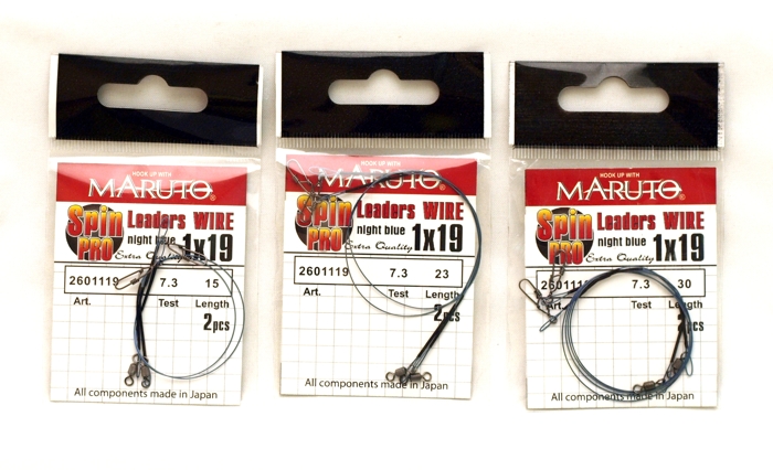 Поводок оснащен фурнитурой Maruto. Вертлюг серия 3033. Застежка серия 2033. Металлическая основа поводка покрыта специальным полимером, что обеспечивает высокую износостойкость.