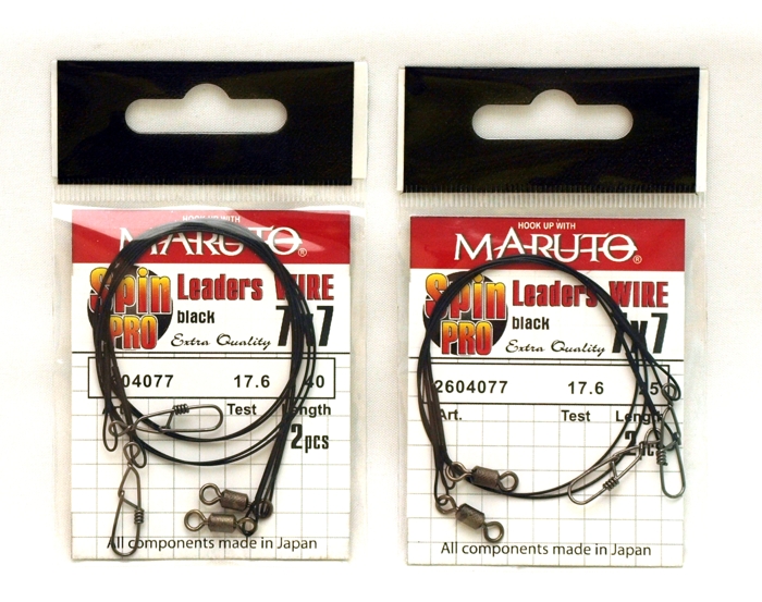 Поводок оснащен фурнитурой Maruto. Вертлюг серия 3033. Застежка серия 2033. Металлическая основа поводка покрыта специальным полимером, что обеспечивает высокую износостойкость.