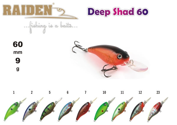 Deep Shad 60 - троллинговый воблер с высокой частотой колебаний. Одна из лучших моделей для летнего троллинга по теплой воде. Благодаря своей универсальности имеет широкий цветовой ряд. Голографические расцветки рекомендованы к использованию в пасмурную погоду и темной воде. Ловит практически всю хищную рыбу, нередки случаи поимки леща и язя. Плавающий. Акустический. Заглубление при троллинге от 1,6 до 3,2 м.