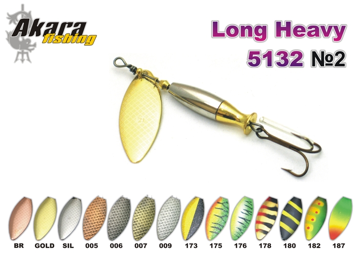 Heavy Long - популярнейшая вертушка у любителей дальнего заброса. Благодаря смещенному центру тяжести на сердечнике и лепестку формы long, обладает высокими аэродинамическими характеристиками при забросе. Отлично снимает рыбу с дальних бровок, позволяет облавливать все глубины. Наиболее эффективна при ловле жереха, судака, щуки и красной рыбы.