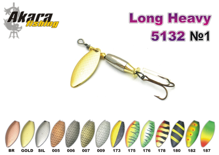 Heavy Long - популярнейшая вертушка у любителей дальнего заброса. Благодаря смещенному центру тяжести на сердечнике и лепестку формы long, обладает высокими аэродинамическими характеристиками при забросе. Отлично снимает рыбу с дальних бровок, позволяет облавливать все глубины. Наиболее эффективна при ловле жереха, судака, щуки и красной рыбы.