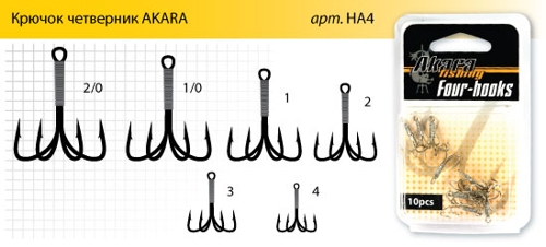 Крючки AKARA HA4 ( 1/0, NI, четверник)