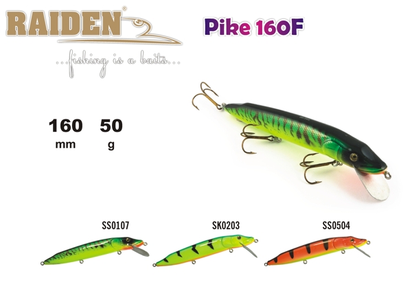 Pike - классический деревянный воблер для ловли крупной щуки. Характеризуется размашистой и стабильной игрой, наряду с медленной проводкой, используется так же при скоростном троллинге. Наличие алюминиевой лопатки позволяет изменить угол атаки и форму лепестка, т.е. изменить характер игры и заглубление, такие настройки часто используют профессионалы. Рекомендован для ловли по холодной воде. Плавающий. Pike 160 - заглубление при ловле в заброс от 0 до 0,8 м, при троллинге от 0,6 до 1,4 м, Pike 180 - заглубление при ловле в заброс от 0 до 1,1 м, при троллинге от 0,8 до 2,0 м, Pike 215 - заглубление при ловле в заброс от 0 до 1,4 м, при троллинге от 1,2 до 3,0 м (заглубления указаны при стандартном положении лопатки).