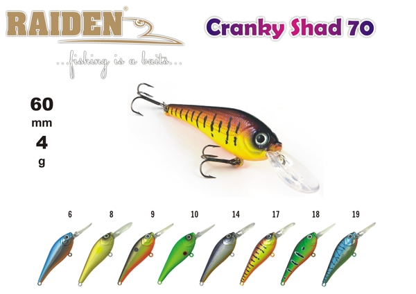 Cranky Shad 50 - классический шад с игрой, характеризующейся средней частотой колебаний при небольшой амплитуде. Универсален по применению. Хорошо себя зарекомендовал при летнем троллинге по теплой воде. Благодаря увеличенной акустической камере, привлекает хищника с дальних расстояний. Рекомендован для ловли в условиях плохой освещенности и ловле в воде с низкой прозрачностью. Одна из самых популярных моделей у многих поколений рыболовов. Плавающий. Акустический. Заглубление при ловле в заброс от 0,6 до 1,3 м, при троллинге от 1,2 до 2,6 м.