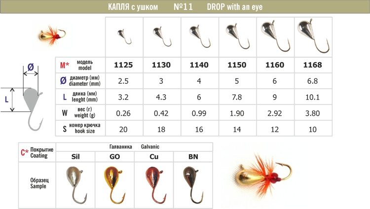 Мормышка КАПЛЯ 11 (муха) с ушком (упак. 10 шт.)