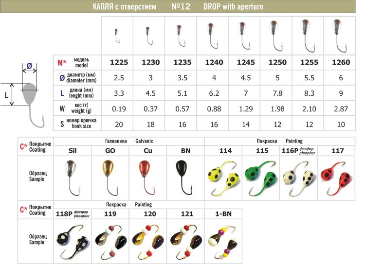 Мормышка КАПЛЯ 12 с отверстием (упак. 10 шт.)