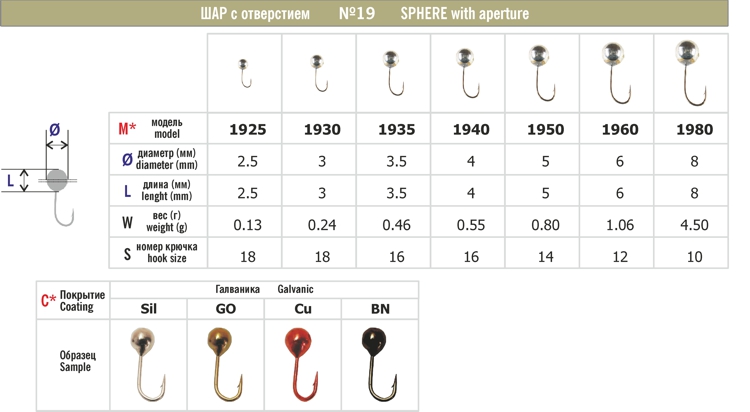 Мормышка ШАР 19 с отверстием (упак. 10 шт.)