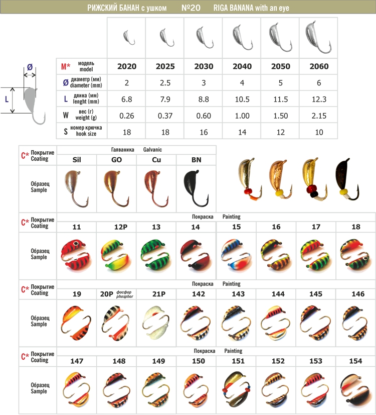 Мормышка РИЖСКИЙ БАНАН 20 с ушком (3 мм, 0.6 г, цвет: 152)