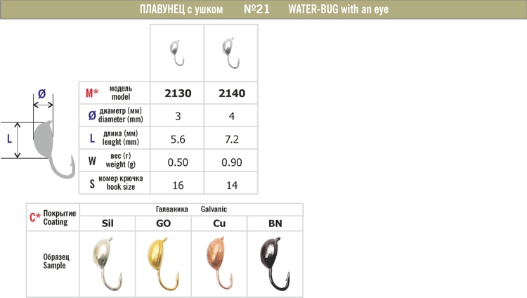 Мормышка ПЛАВУНЕЦ 21 с ушком (4 мм, 0.9 г, цвет: GO)