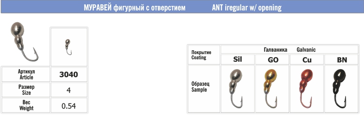 Мормышка МУРАВЕЙ 30 с отверстием (4 мм, 0.54 г, цвет: BN)