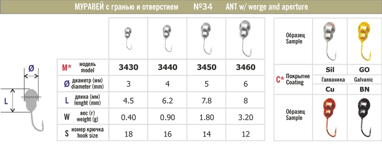 Мормышка МУРАВЕЙ гранёный 34 с отверстием (упак. 10 шт.)