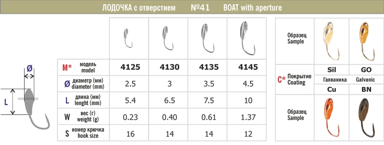 Мормышка ЛОДОЧКА 41 с отверстием (2.5 мм, 0.23 г, цвет: SIL)