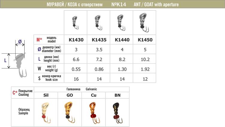 Мормышка КОЗА - МУРАВЕЙ 14 с отверстием (упак. 10 шт.)