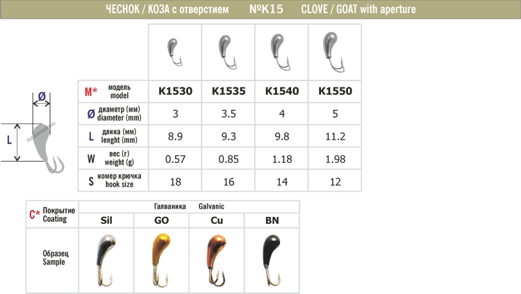 Мормышка КОЗА - ЧЕСНОК 15 с отверстием (3 мм, 0.57 г, цвет: CU)