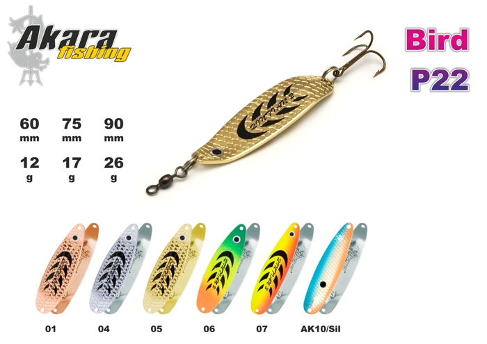 Bird - блесна предназначена для ловли по холодной воде. Весной хорошо ловят яркие цвета, а осенью естественные. Подходит для ловли в заброс и для троллинга.