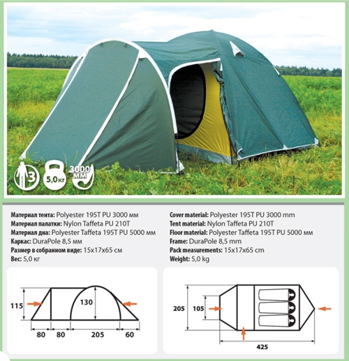 Trial 3 Plus универсальная трехместная палатка для туризма, рыбалки, охоты и активного отдыха. Просторная и функцио- нальная, обладает относительно небольшим весом и размером в собранном виде, может с одинаковым успехом использовать- ся в дальних походах и туристических выездах. Вместительный тамбур с двумя раздельными входами удобен и практичен. От- дельный вход в жилое помещение. Все входы продублированы противомоскитной сеткой. Предусмотрены вентиляционные окна, карманы на стенках па- латки, под куполом имеется подвесная полочка. Особенности: вместительный тамбур три входа хорошо вентилируется высокая ветроустойчивость дополнительные штормовые оттяжки