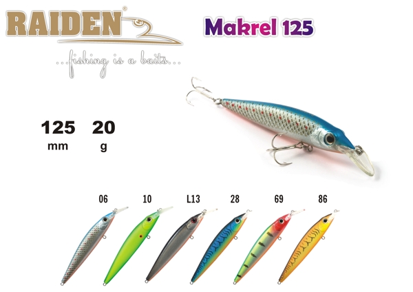 Makrel - является одним из самых популярных воблеров для ловли щуки. Эта классическая модель характеризуется размашистой игрой, что является основным оружием при ловле этой зубастой хищницы. Используется при ловле по холодной воде. Модель выпускается в двух размерах. Плавающий. Акустический. Makrel 125- заглубление при ловле в заброс от 1,2 до 2,5 м, при троллинге от 1,8 до 4,0 м, Makrel 150 - заглубление при ловле в заброс от 1,5 до 2,8 м., при троллинге от 2,2 до 5,0 м.