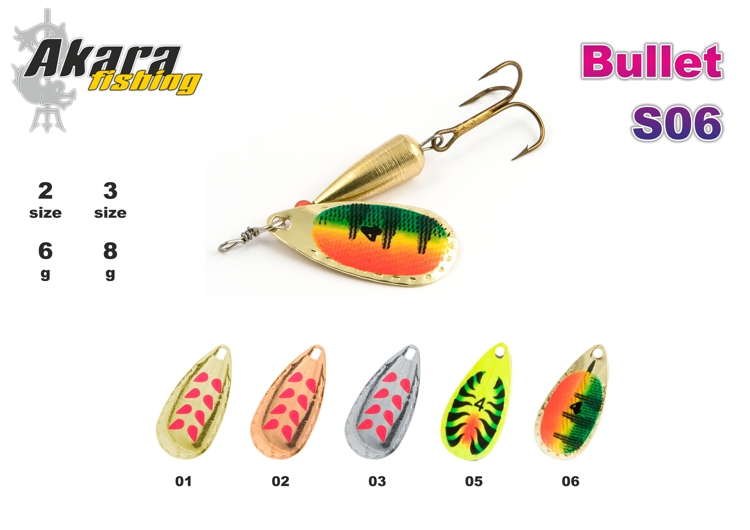 Bullet - классическая вертикальная вертушка с ассиметричным лепестком. Особеностью данной блесны является ее способность, работать на самой медленной проводке, такая изводяще-медленная игра часто провоцирует на хватку крупного хищника. Эффективна при ловле трофейных экземпляров.