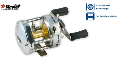 Универсальный мультипликатор от Surf Master, корпус и все механизмы полностью металлические. Усиленный привод, мультидисковый фрикцион, центробежный тормоз.