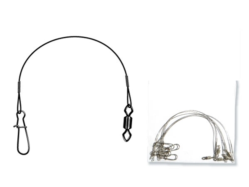 Материал для поводков свит из тончайшей проволоки, выполненной из нержавеющей стали. Поводок оснащен самозатягивающейся застежкой и качественным вертлюжком.