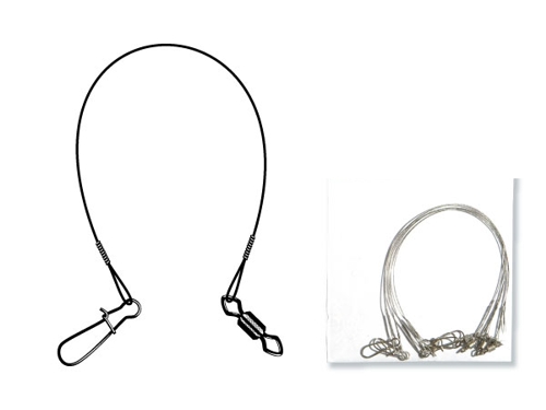 Материал для поводков свит из тончайшей проволоки, выполненной из нержавеющей стали. Поводок оснащен самозатягивающейся застежкой и качественным вертлюжком.