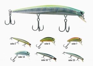 Эти приманки обладают оригинальной игрой, имитирующей поведение раненной рыбки в воде, что особенно привлекает хищников, а так же позволяет добиться положительных результатов даже при вялом клёве. Помимо колебательных движений, приманка выполняет зигзагообразные движения, напоминающие движения раненного малька. Данный эффект позволяет значительно повысить эффективность приманки и делает её незаменимой при ловли вялого и неактивного хищника. Воблер оснащен оригинальными тройниками Maruto, что делает приманку сверхзацепистой, работающей на касание. Обозначения: F плавающая модель (носовое кольцо на теле воблера) | MD плавающая модель (носовое кольцо на лопатке приманки) |S - тонущая модель.