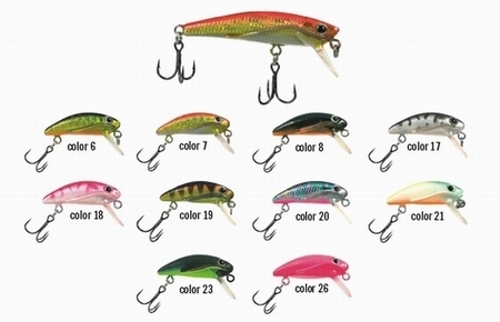 Эти приманки обладают оригинальной игрой, имитирующей поведение раненной рыбки в воде, что особенно привлекает хищников, а так же позволяет добиться положительных результатов даже при вялом клёве. Помимо колебательных движений, приманка выполняет зигзагообразные движения, напоминающие движения раненного малька. Данный эффект позволяет значительно повысить эффективность приманки и делает её незаменимой при ловли вялого и неактивного хищника. Воблер оснащен оригинальными тройниками Maruto, что делает приманку сверхзацепистой, работающей на касание. Обозначения: F плавающая модель (носовое кольцо на теле воблера) | MD плавающая модель (носовое кольцо на лопатке приманки) |S - тонущая модель.