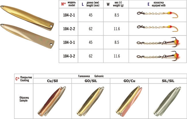 Зимняя блесна Whitebait 104 (верт., 62 мм, 11,6 г, цвет: CU/SIL)